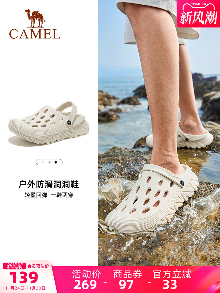 Camel Men's Clogs Summer Thick-Soled Non-Slip Outdoor Sandals for Women Closed-Toe Beach Shoes Water-Resistant Slippers for Men