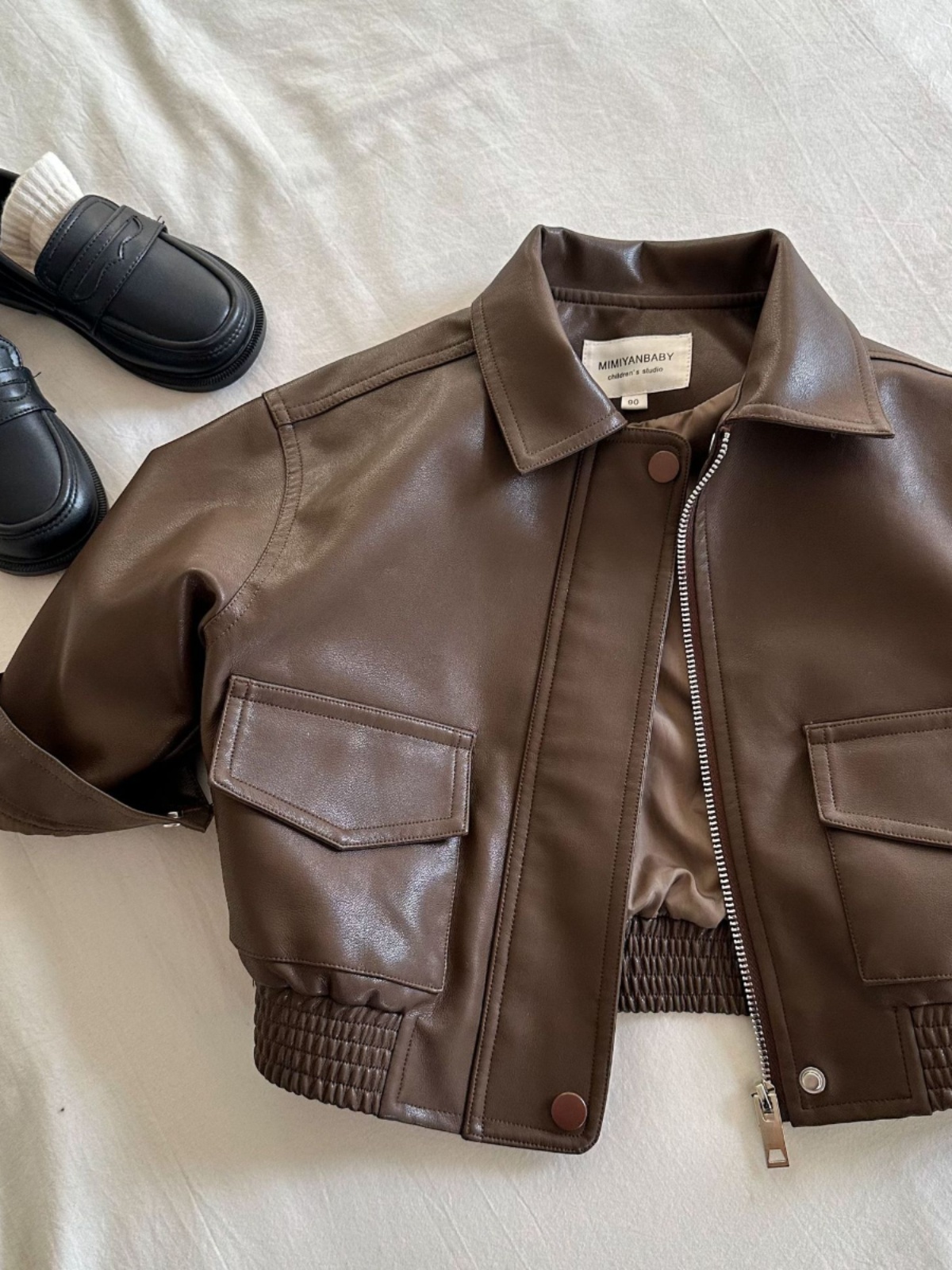 Bunanaer 2025 Children's Jacket Spring and Autumn New Product Unisex Baby Solid Color Lapel Leather Jacket Short Leather Coat Trendy