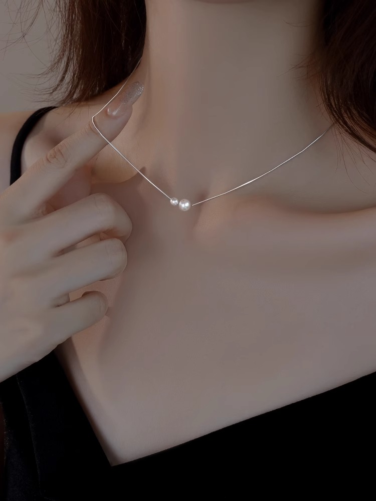 Simple All-Over Sterling Silver Pearl Pendant Necklace for Women 2025 New Popular Style Versatile Clavicle Chain Light Luxury Neck Chain