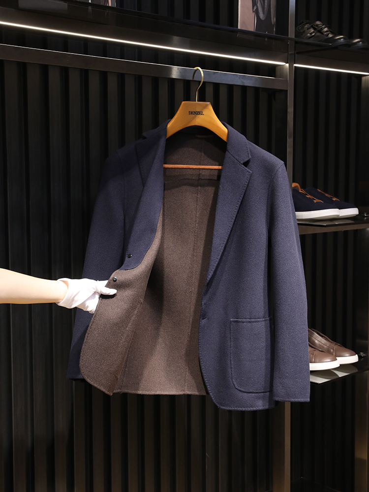 【240204070】The Pinnacle of Tranquility and Luxury, Double-Sided, Two-Tone 100% Wool Men's Autumn and Winter Double-Sided Woolen Blazer