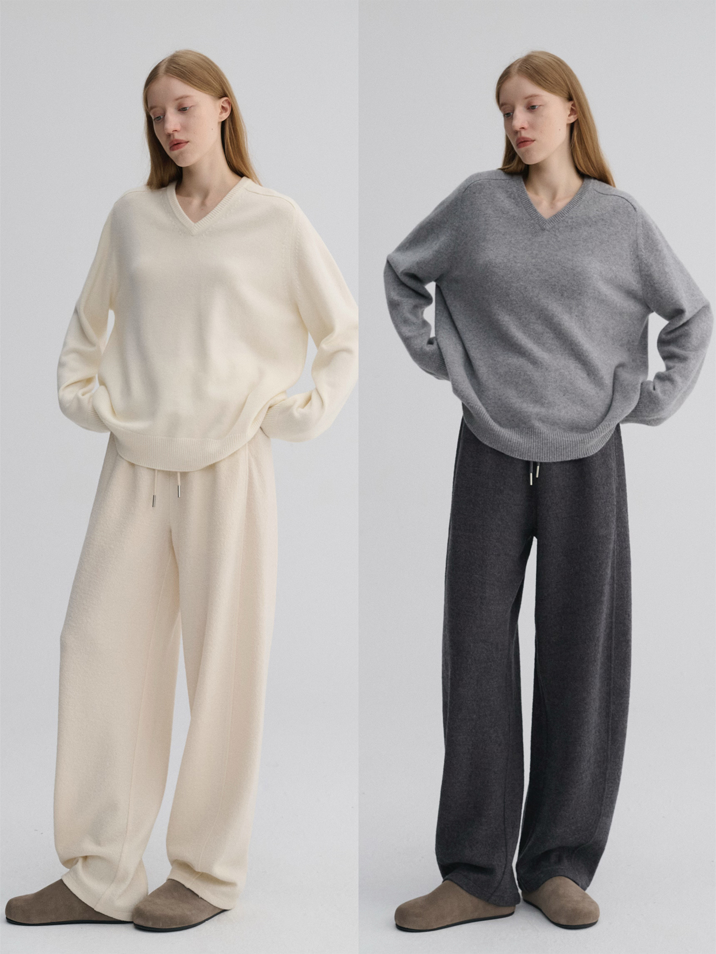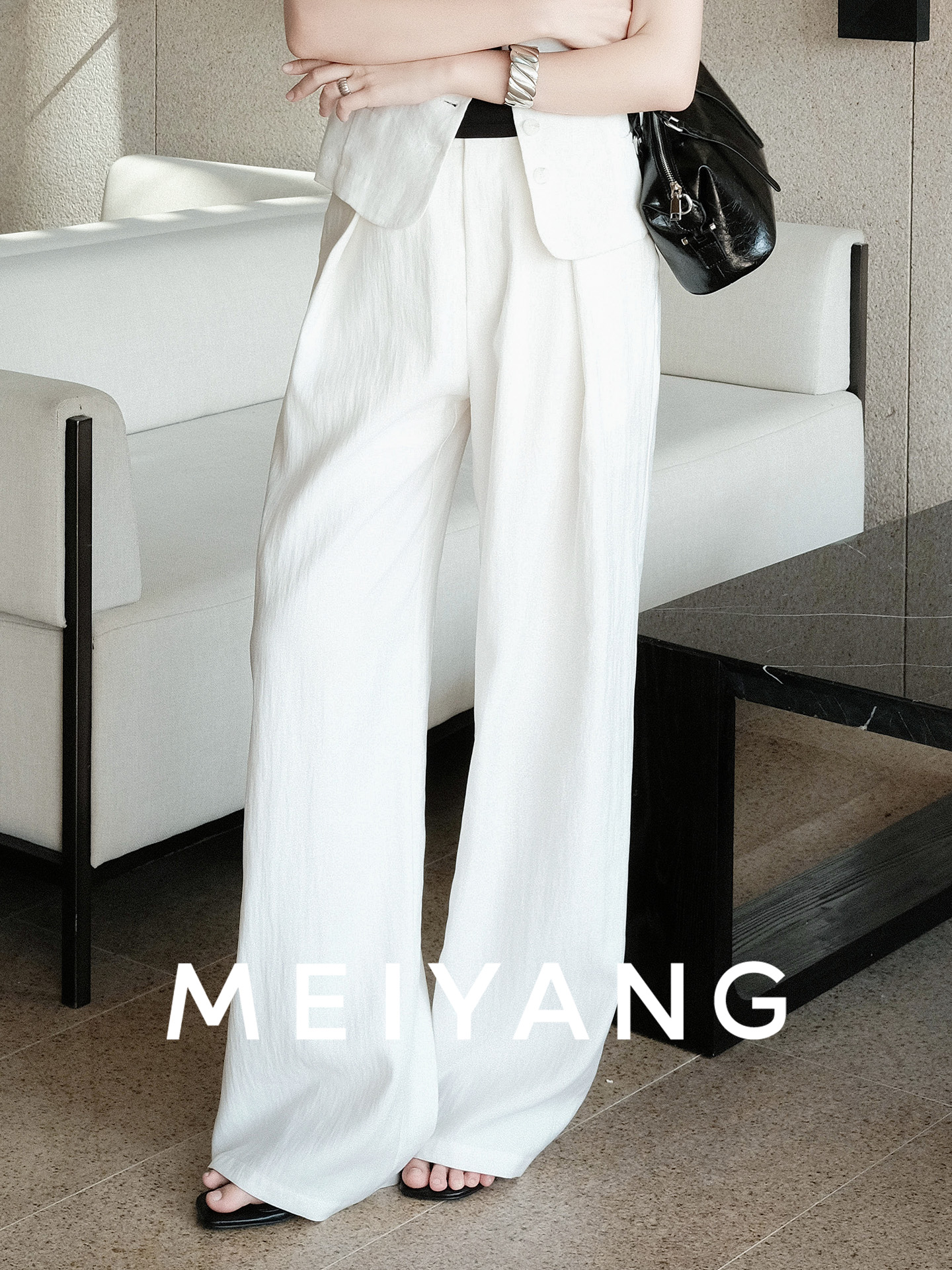 Maison Cecile Three-Color/Thick Version Tencel Wool Drapey Slimming Drawstring Elastic Waist Curved Scimitar Pants