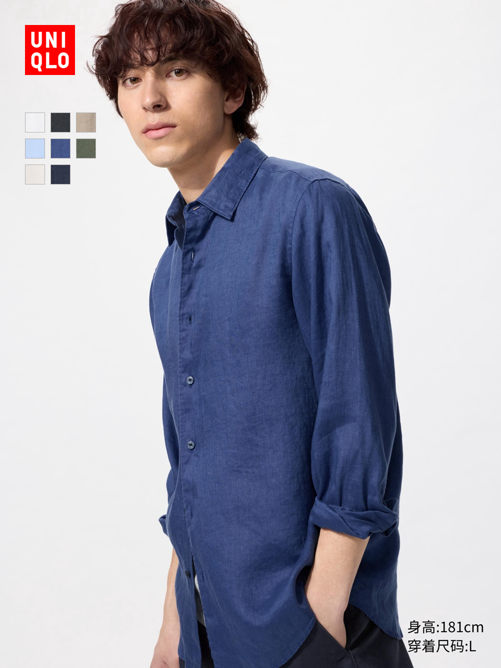 Uniqlo Men's and Women's French Linen Shirts/Long-Sleeved Shirts Linen Casual 477641