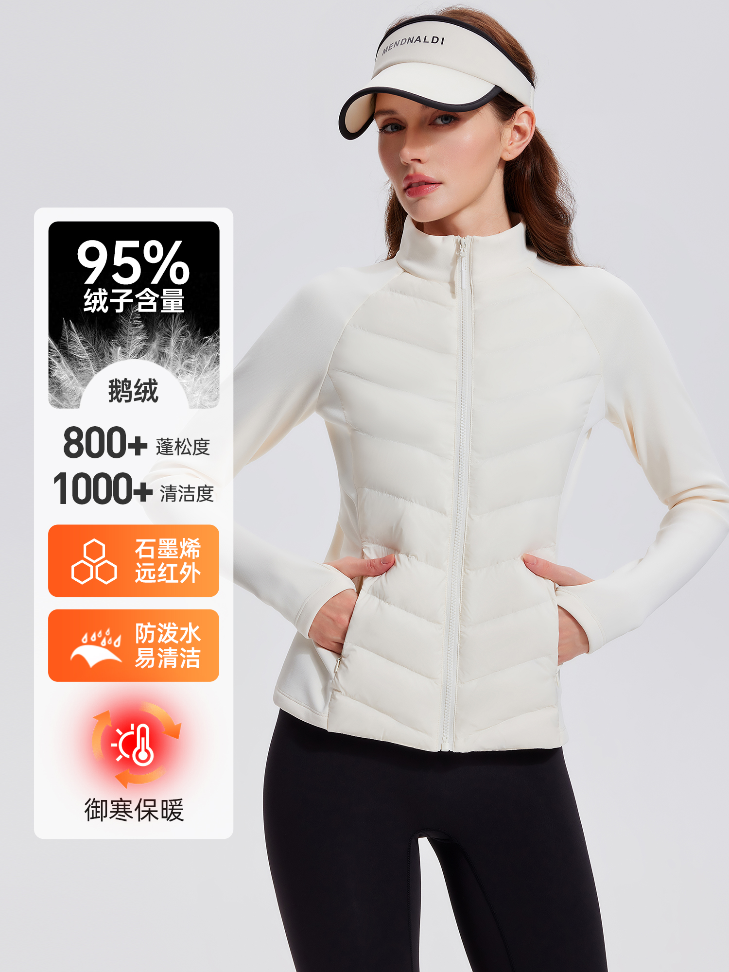 Sports down Jacket for Women in Autumn and Winter, Cold-Proof, Goose Down, Lightweight, Slim Fit, Running Inner Liner, High Loft, Quick-Heating, Warm Jacket