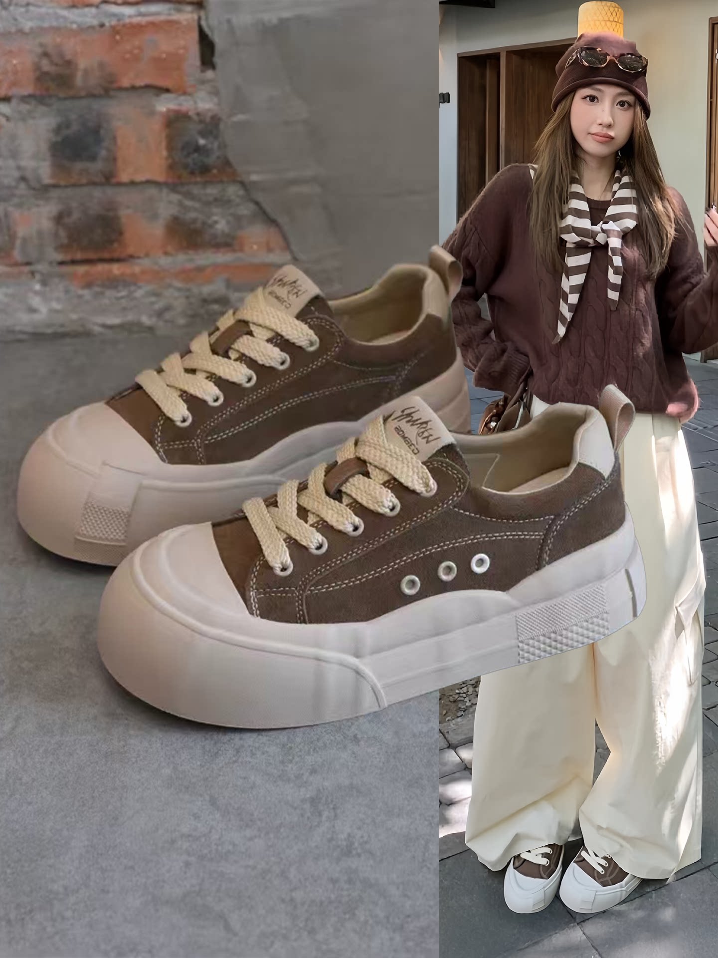 Hong Kong Ugly-Cute Thick-Soled Big-Toe Sneakers for Women 2026 Autumn New Retro Casual Sneakers Fashionable Versatile Canvas Shoes