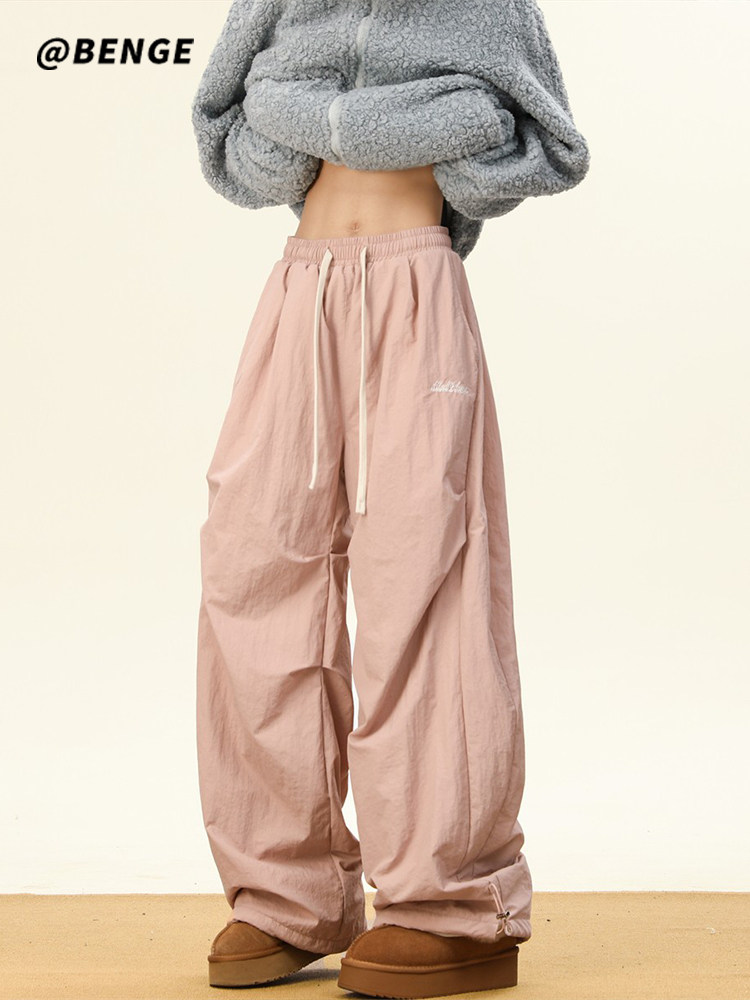 Pink Northeast Cotton Pants for Women, Winter Thick Fleece-Lined Wide-Leg down Pants, Waterproof and Windproof, Harbin Style