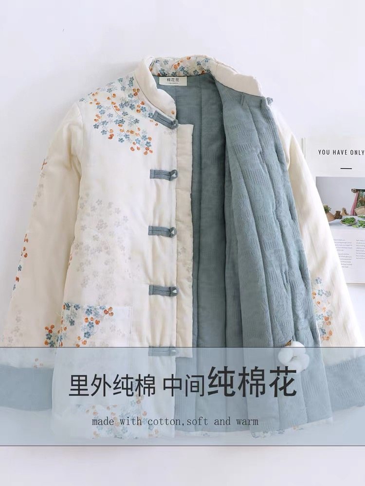Cold-Resistant Cotton-Padded Jacket for Temperatures Below -10 Degrees, Handmade, Thickened for Warmth, New Chinese Style, Winter Cotton Coat, Loose Retro Cotton Jacket for Women