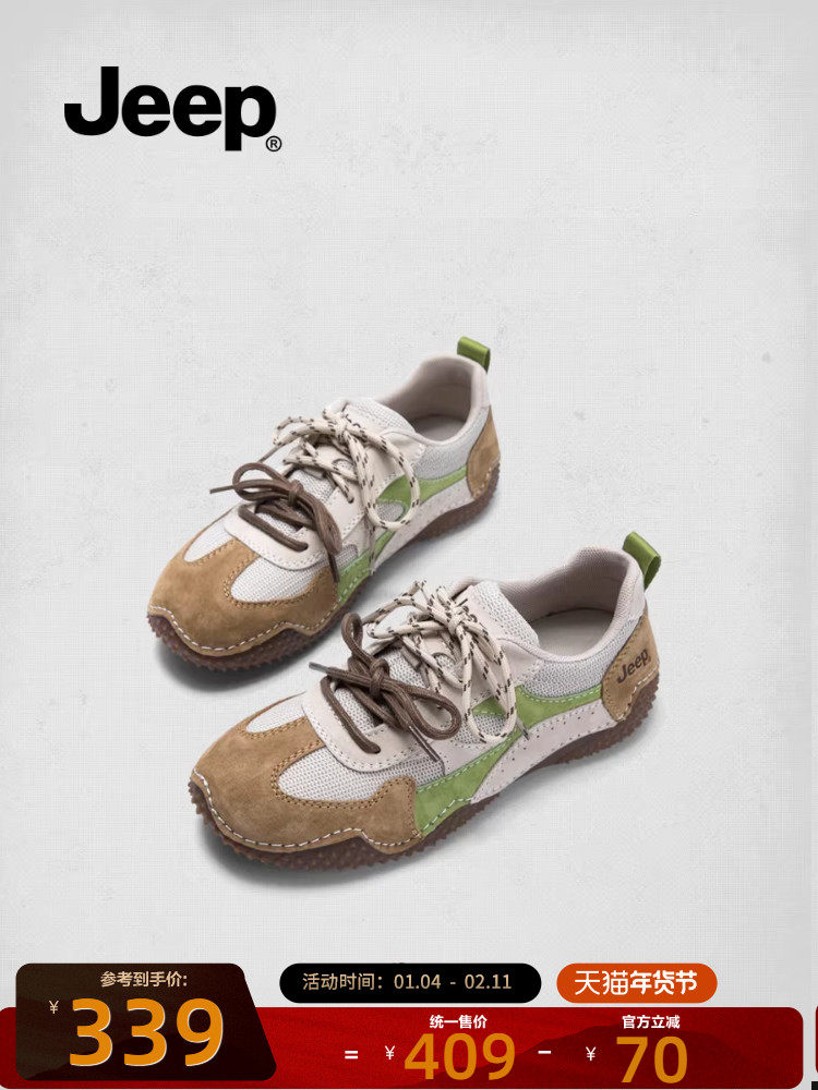 Jeep Sneakers for Women 2026 New Versatile Retro German Training Shoes Women's Shoes Lightweight Non-Slip Soft Sole Running Shoes