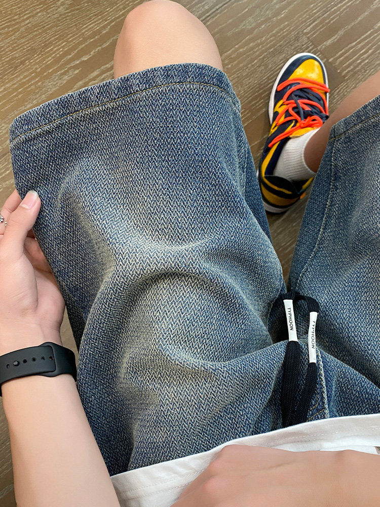 Starry Sky Pattern Denim Shorts for Men, Summer Thin Style, American High Street Fashion Brand, Loose Wide-Leg Straight Mid-Length Shorts, Five-Point Shorts