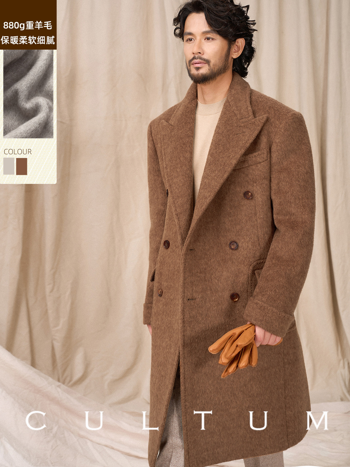 【10% Camel Hair, 10% Mulberry Silk, 80% Wool】Cultum 880g Arena Edition Polo Double-Row Wool Coat for Men