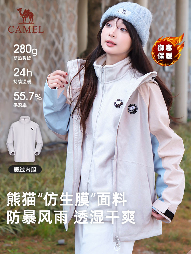Camel Panda Outdoor Jacket Women's 2025 New Autumn and Winter Three-In-One down Liner Mountaineering Jacket Men's