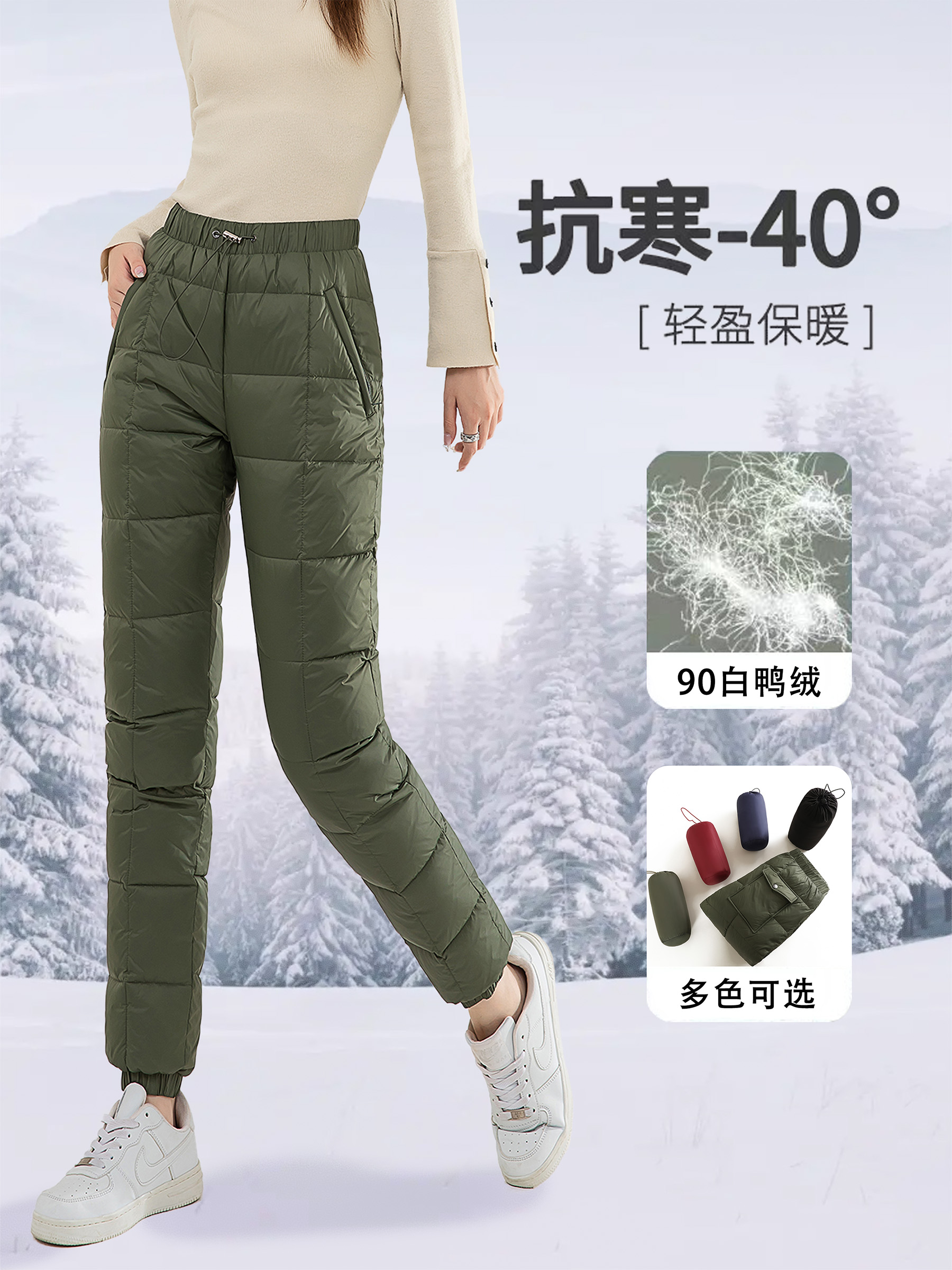 2025 Northeast Outdoor Ski High Waist Thickened Feather White Duck down Pants Women's Outerwear Windproof Waterproof Warm Cotton Pants Winter
