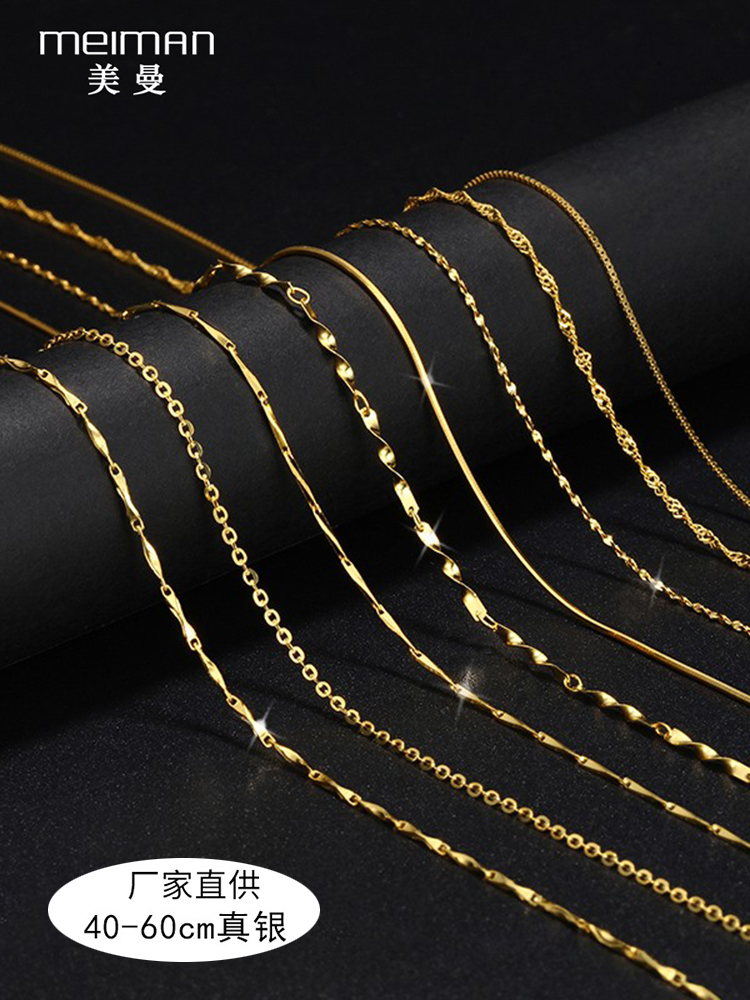 18K Gold Necklace for Women, 925 Sterling Silver Gold-Plated Chain, Colored Gold Plain Chain, Thin Bare Chain, Collarbone Chain Without Pendant Accessories