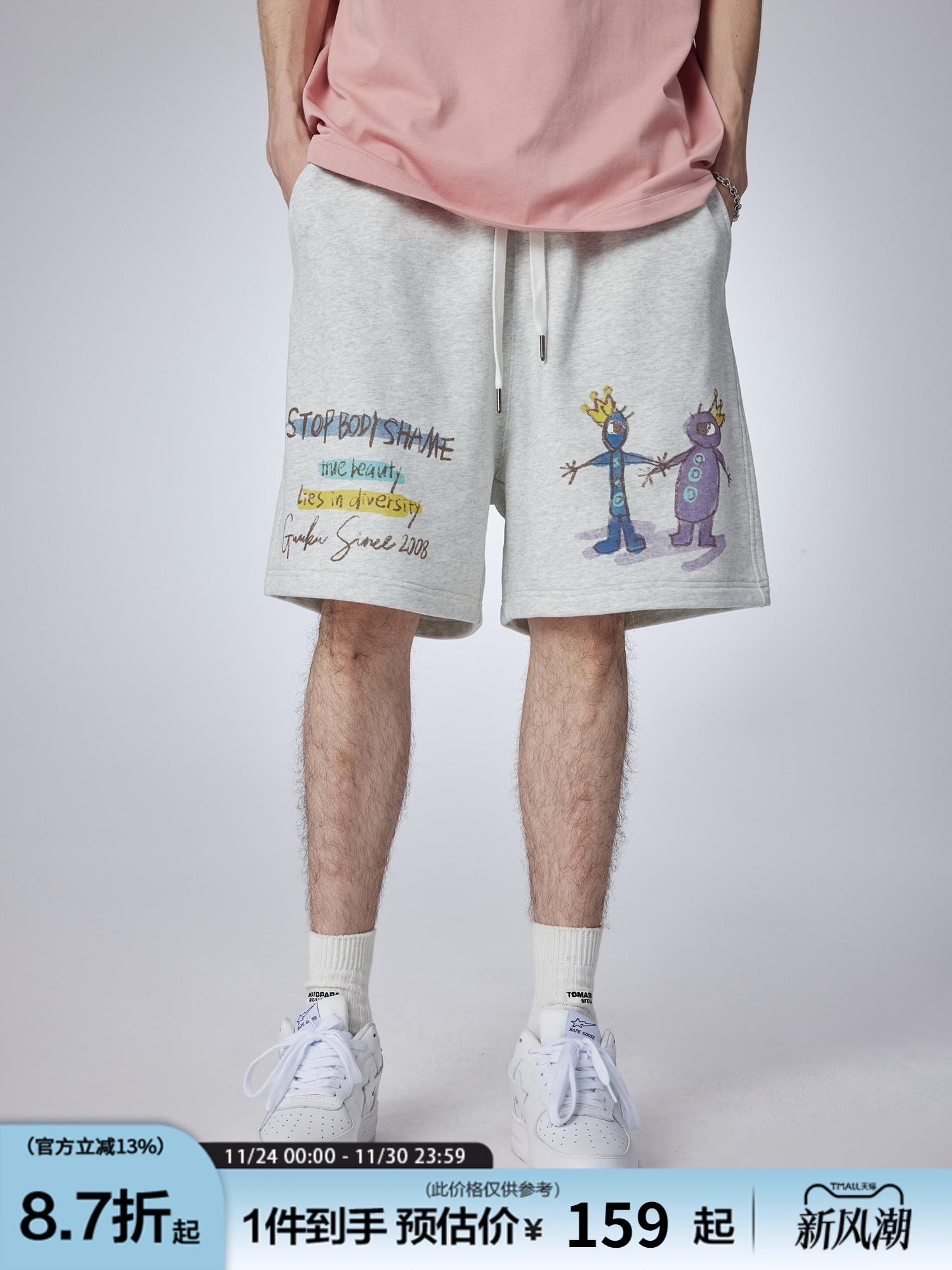 Guuka Gray Heavyweight Shorts for Men, New Summer Mid-Length Pants, Youth American-Style Five-Point Pants, Loose-Fitting Sports Pants