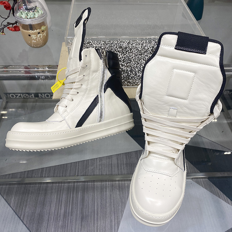 Round Owens Inverted Triangle Shoes Men's High-Top Genuine Leather Black and White Panda Dunk Thick-Soled Height-Increasing Short Boots Women's