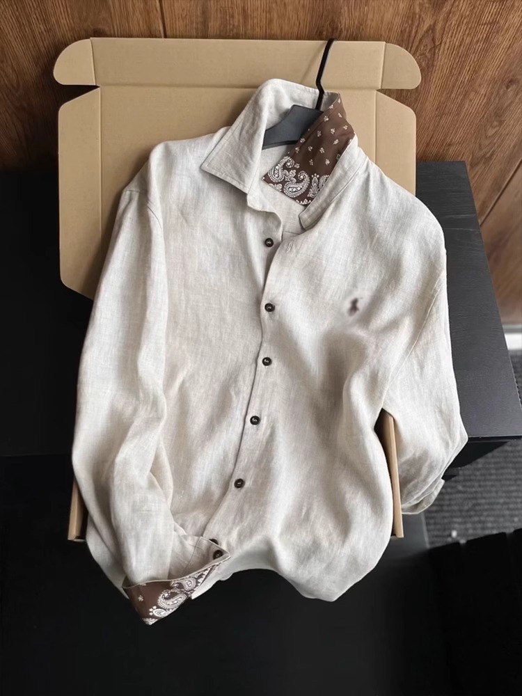 Old Money Style Linen Outfit for Men, Natural Linen Long-Sleeved Shirt Paired with Cotton-Linen Casual Shorts, Complete Set