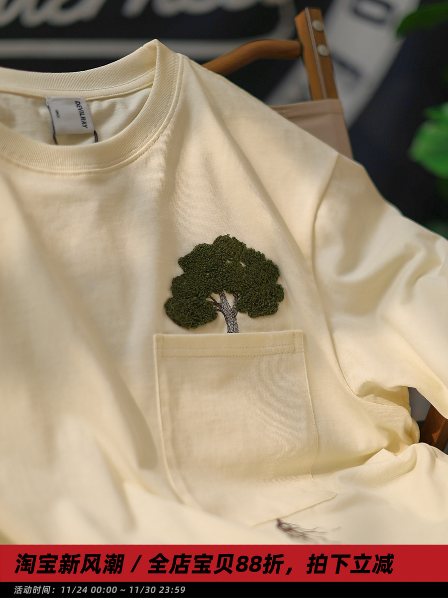 【True Qing Song】Mr. Qilin Summer Pure Cotton Embroidered Short-Sleeve T-Shirt for Men, Casual Loose Fit Couple's Half-Sleeve Tee