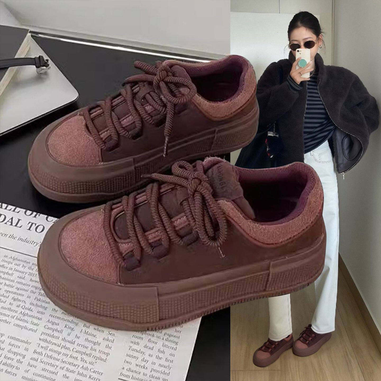 Hong Kong Genuine Leather Retro German-Style Training Shoes for Women 2026 Spring and Autumn Thick-Soled Height-Increasing Casual Sneakers Versatile Popular Platform Shoes
