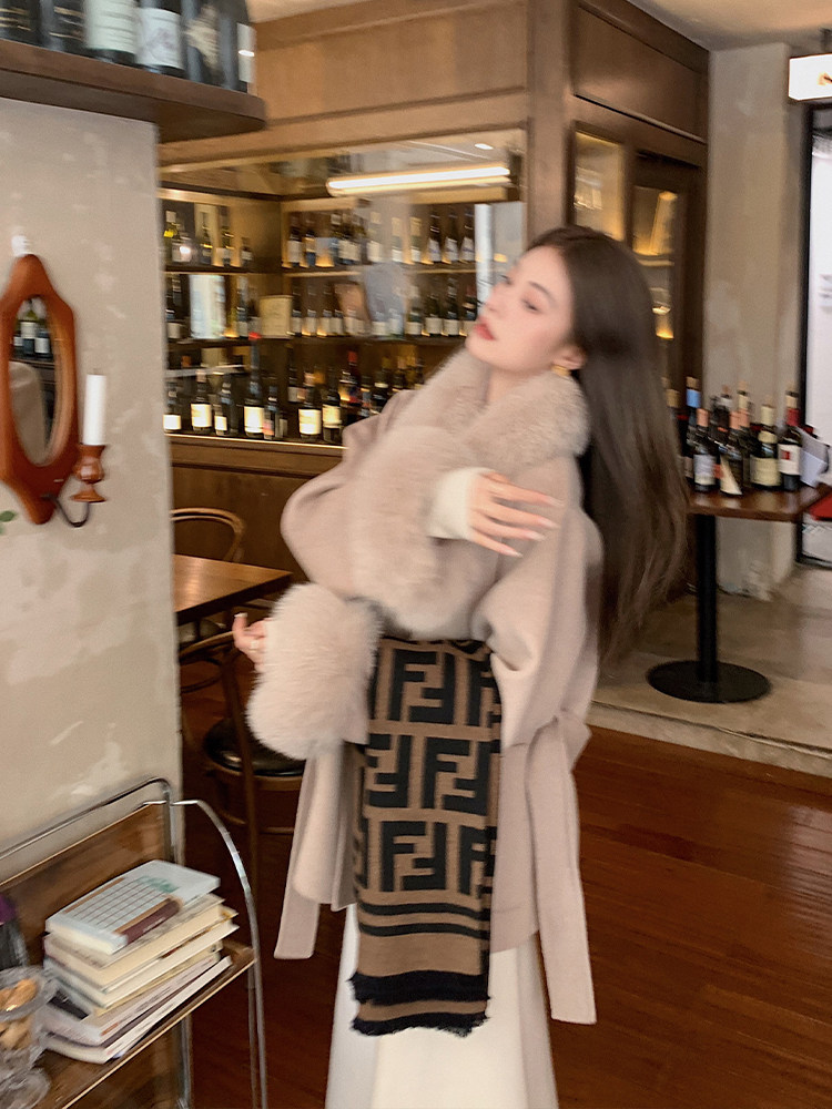 Xue Chuqing~ Double-Sided Wool Coat, Mid-Length, with Fox Fur Collar, Woolen Jacket for Women, Gentle Style, New for Autumn and Winter 2025