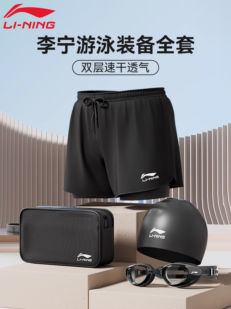 Li-Ning Men's Swimming Trunks Adult Three-Piece Swimming Gear Set Men's Full Set Swimming Goggles Swimming Cap Swimsuit 2025 New Model