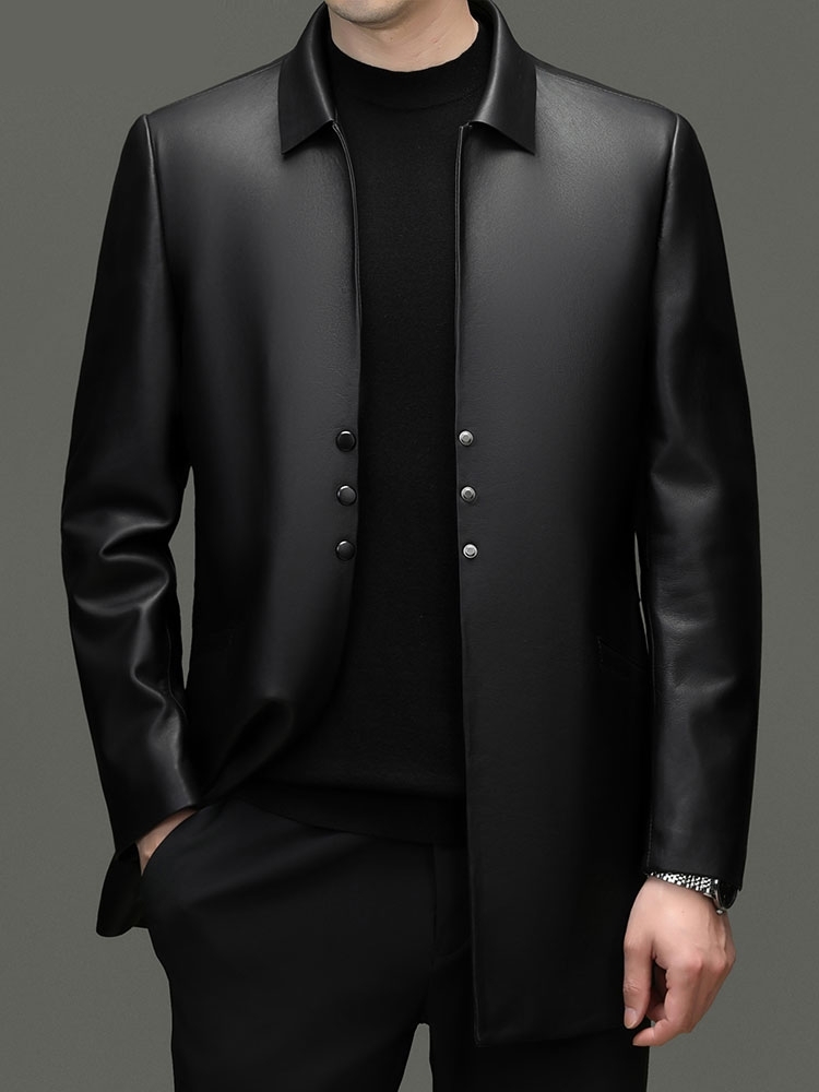 Hengyuanxiang Leather Jacket for Men, Genuine Leather Coat, 2025 New Model, First Layer Sheepskin Trench Coat, High-End Middle-Aged Dad Leather Jacket