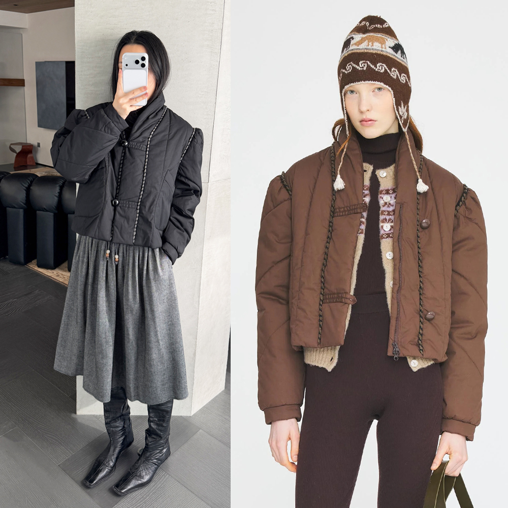 Jazz Music~ French-Style Knotted Trim Puff Sleeve Vintage Short Jacket Cotton Coat