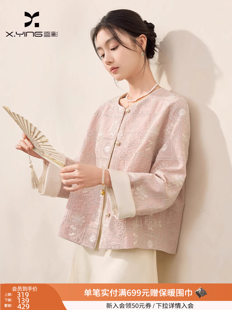Xiangying New Chinese Style National Fashion Jacket for Women 2025 Autumn New Heavy Embroidery Exquisite Pink Cardigan Top Early Autumn