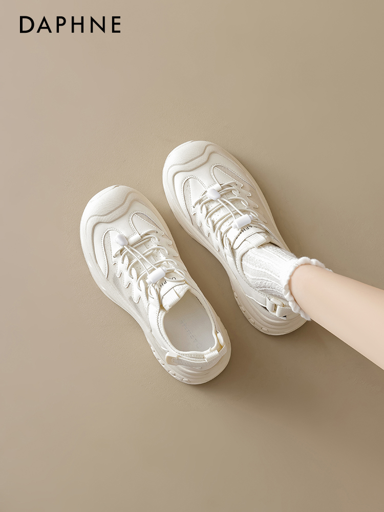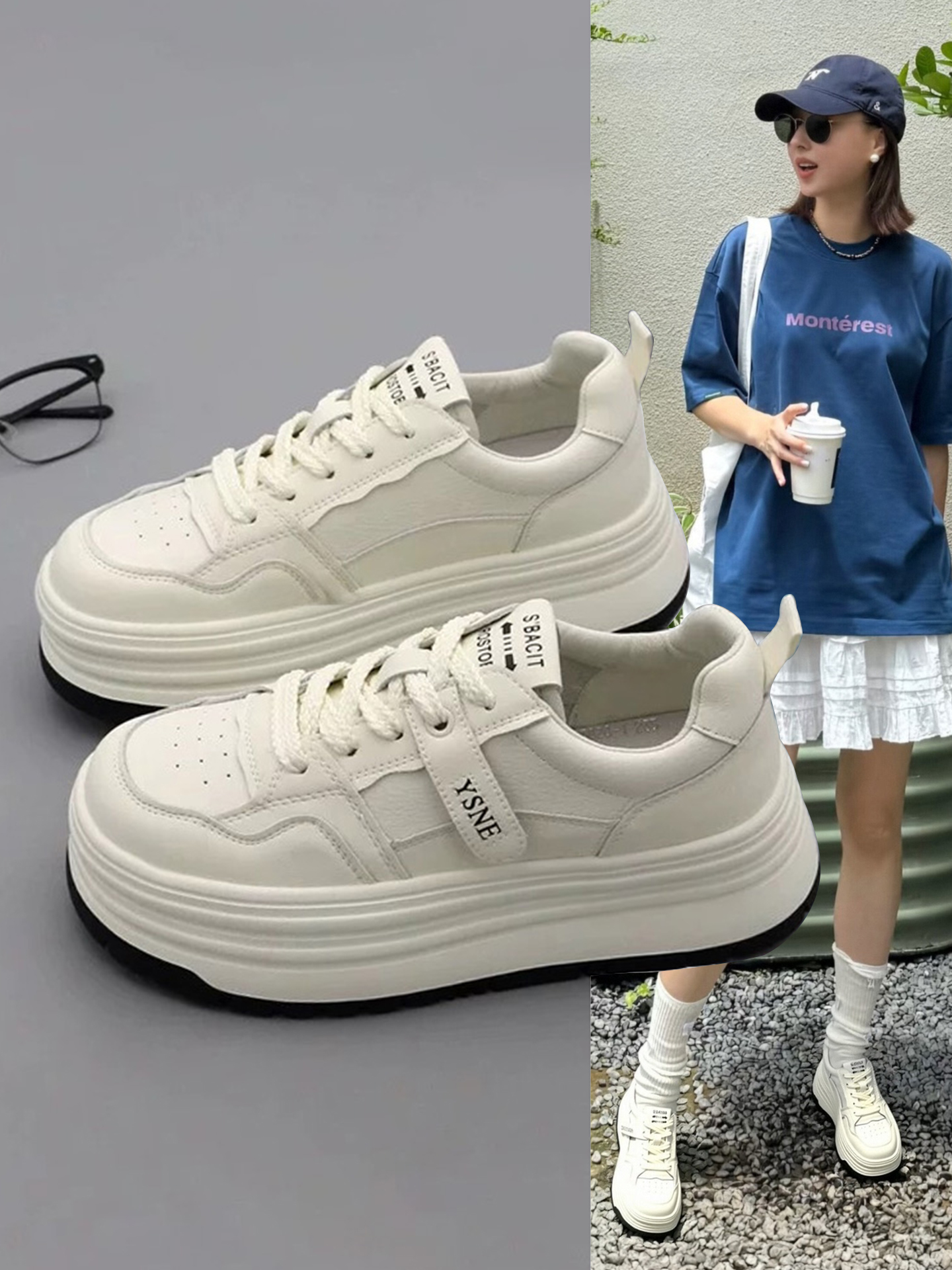 Hong Kong Fashion Genuine Leather Versatile White Sneakers for Women 2025 Spring and Autumn Round Toe Korean Style Low-Top Platform Thick-Soled Casual Sneakers