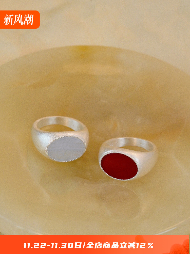 925 Sterling Silver Soft Mountain Style Niche Design Minimalist Inlaid Brushed Craft Natural Red Agate Blue Vein Stone Ring