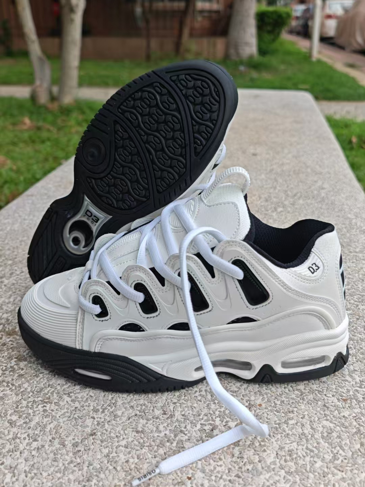 Osirisd3 Panda-Colored Loafers with Full Air Cushion, Street Dance 3m Reflective Wear-Resistant Low-Top Skateboard Shoes, Height-Increasing Shoes for Wide Feet
