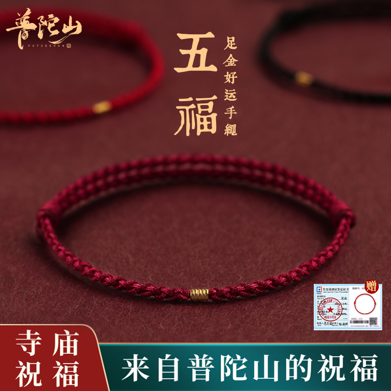Putuo Mountain Year of the Horse Gold Fortune Bead Small Red String Bracelet to Ward Off Bad Luck, Bracelet for Men and Women, Anklet, Couple's Woven Rope