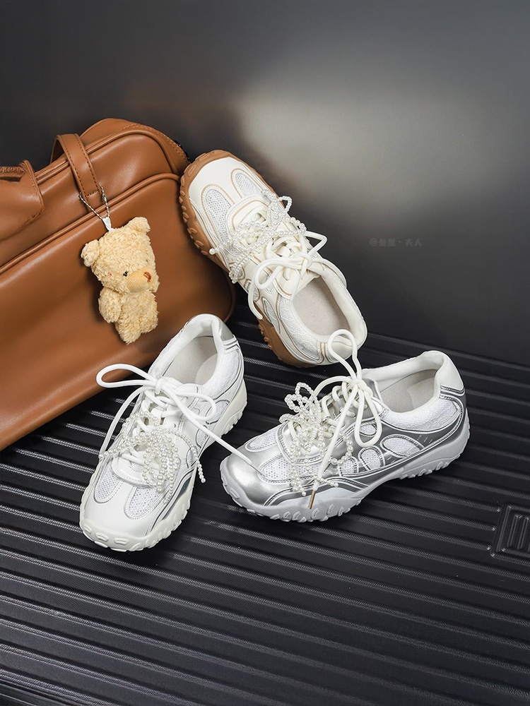 Hong Kong Thick-Soled Dad Shoes for Women 2025 Spring and Autumn New Style Height-Increasing Versatile Lightweight Slimming Genuine Leather Casual Sneakers