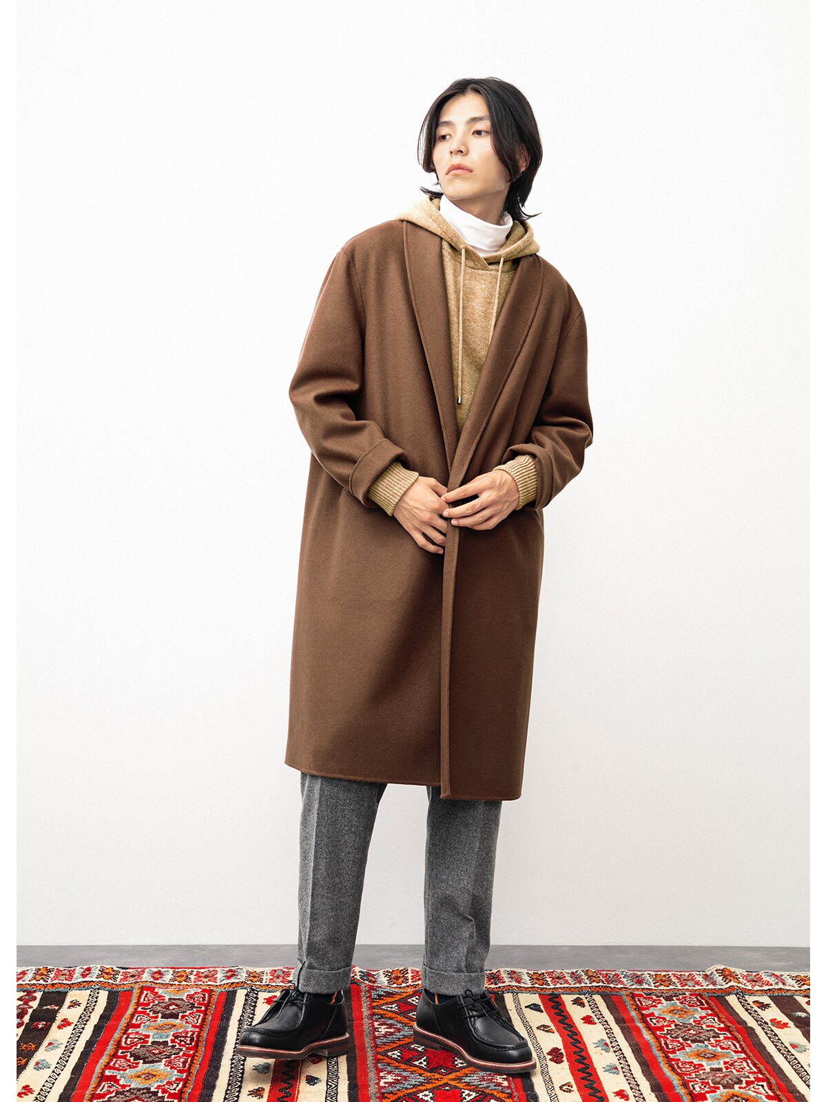Abbey Road Aw Imported High-End Handmade Double-Sided Wool Os Loose-Fitting Long Coat with a Green Fruit Collar