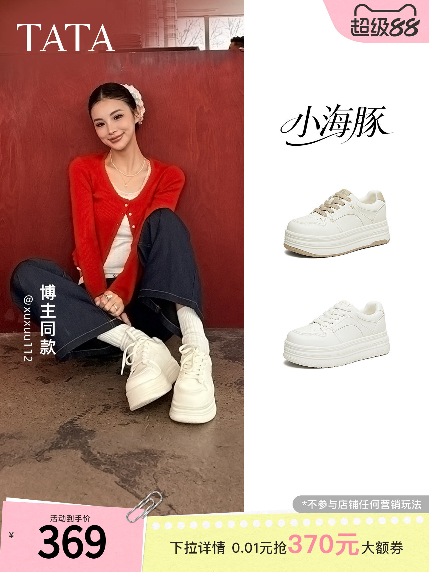 Tata Little Dolphin Sneakers for Women, Spring Style, Height-Increasing White Shoes, Thick-Soled Versatile Student Shoes Clr01Am6