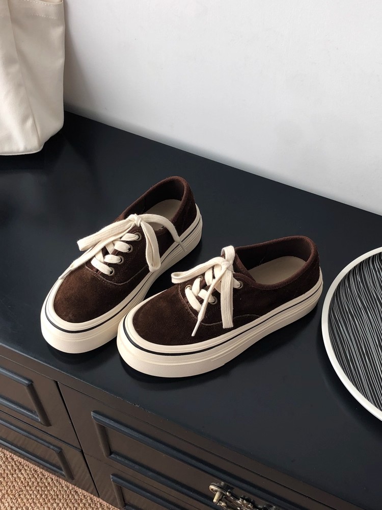 Hong Kong Matte Genuine Leather Thick-Soled Sneakers for Women 2025 Spring and Autumn New Versatile Korean Style Lace-Up Flat Sports Casual Shoes