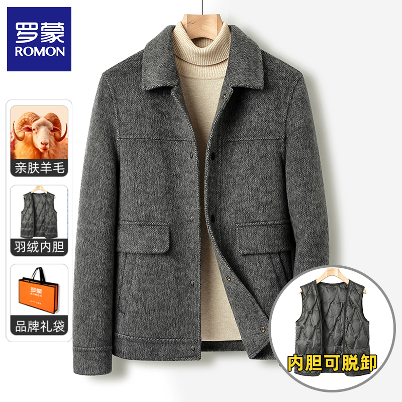 Romon Double-Sided Woolen Coat for Men, Winter Thickened down Lining, Alpaca Wool Coat, Men's Short Woolen Jacket