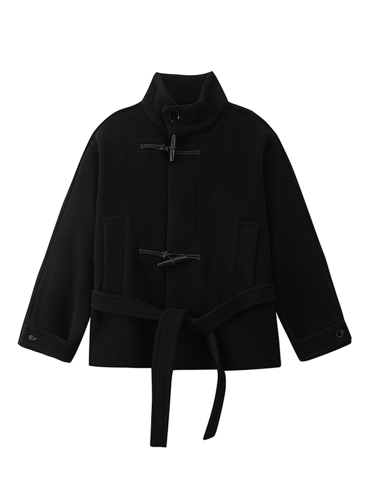 Borrowed Project 100% Pure Wool Short Stand-Up Collar Bathrobe Coat, Fleece-Lined Autumn and Winter Jacket