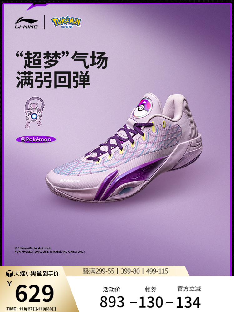 Li-Ning Pokémon Collaboration Series Air Raid 12 Mewtwo | Basketball Shoes Men's Lightweight Professional Practical Sports Shoes