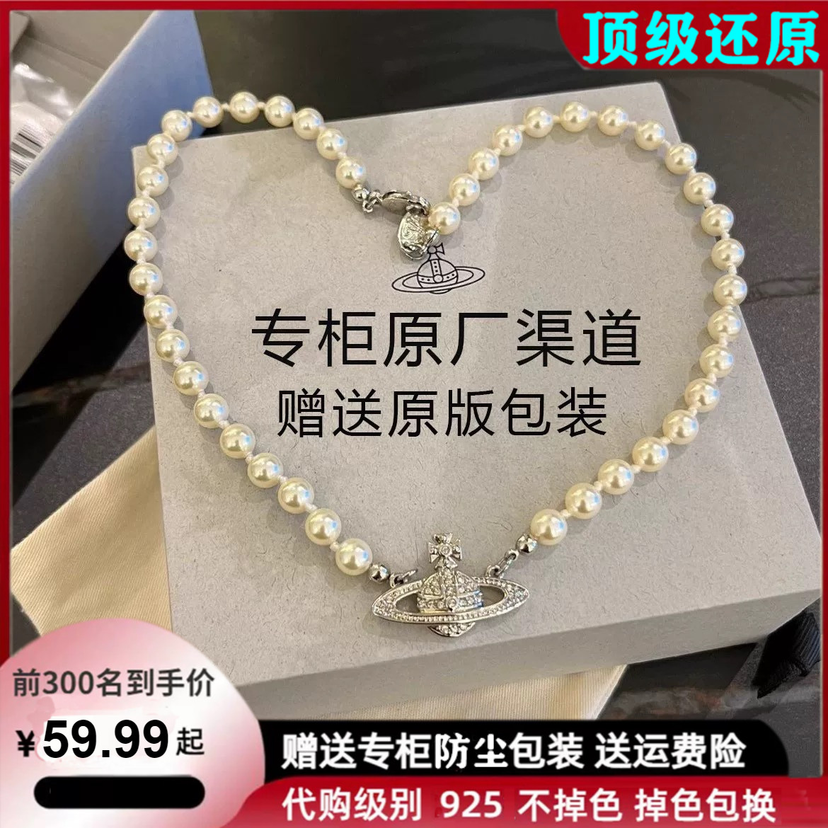 Not as Pictured, Color Fading Guaranteed Refund】Queen Mother Saturn Pearl Necklace Brooch Necklace Bracelet for Women
