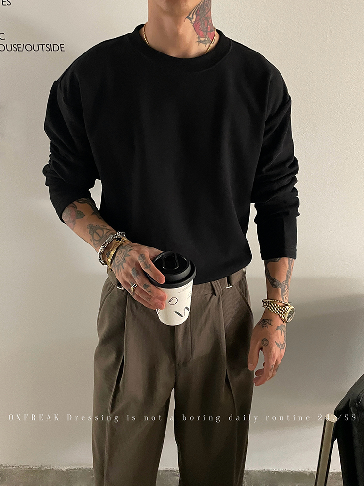 Oxfreak'Basic Style Rich Black' Textured Soft Long Sleeve T-Shirt for Men with Fleece Lining and Crew Neck Base Layer