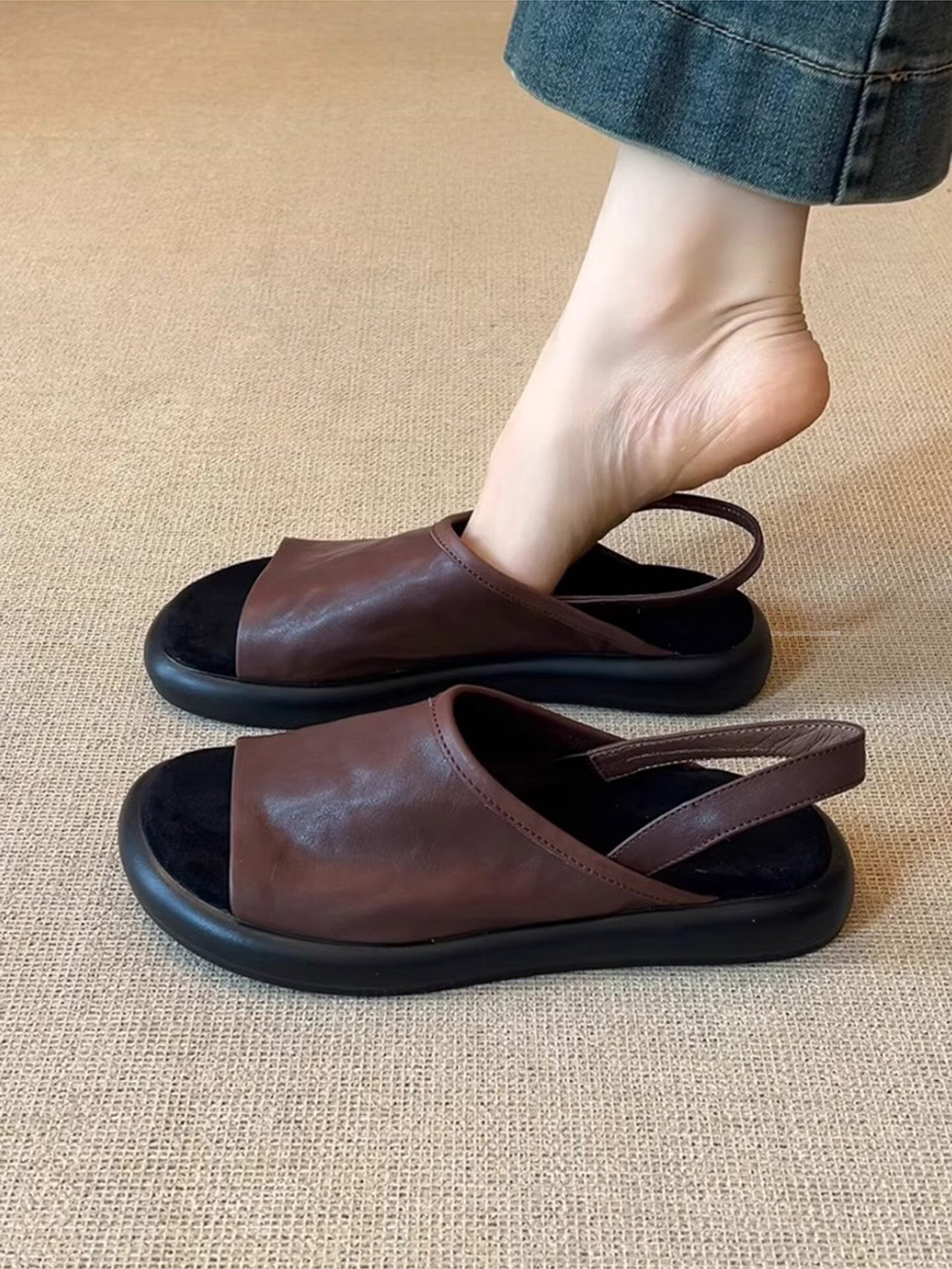 Hong Kong Round-Toe Back-Strap Sandals for Women 2026 Summer New Niche Design Retro Casual Versatile Soft-Soled Roman Shoes