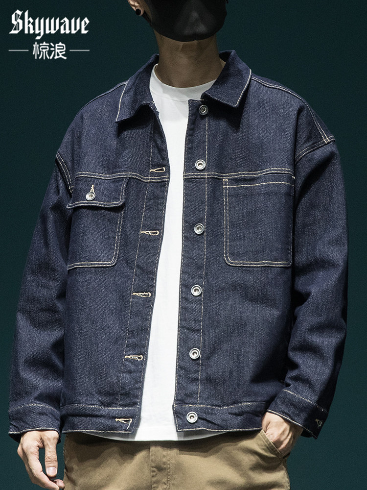High-End Anti-Fading Original Color Washed Denim Jacket for Men, Loose Large Size Lapel Jacket, New Workwear Denim Jacket