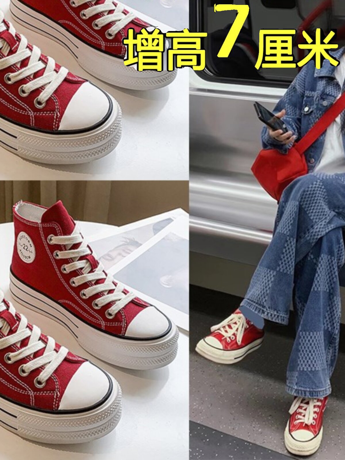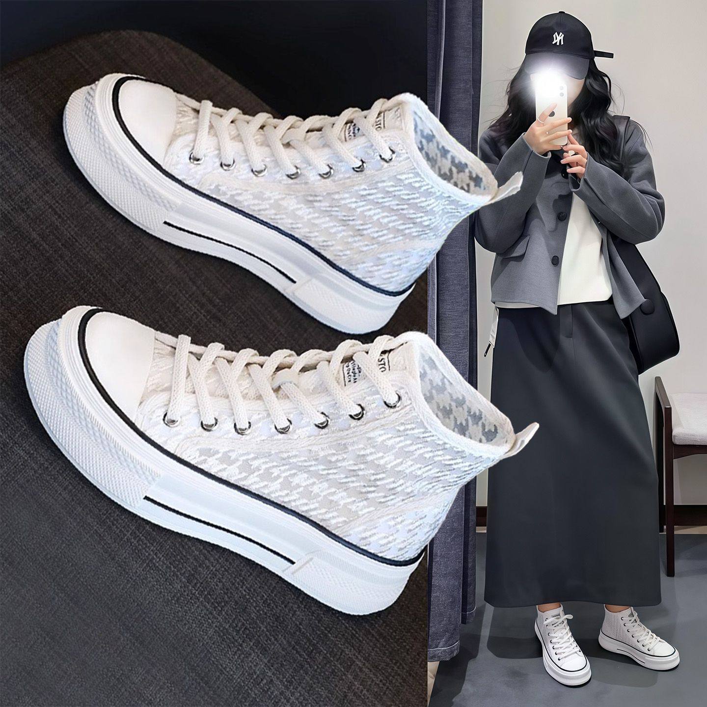 Korean Canvas Shoes for Women, Casual Thick-Soled Autumn Style, Versatile High-Top Inner Height-Increasing White Shoes ins Trendy Shoes Sneakers