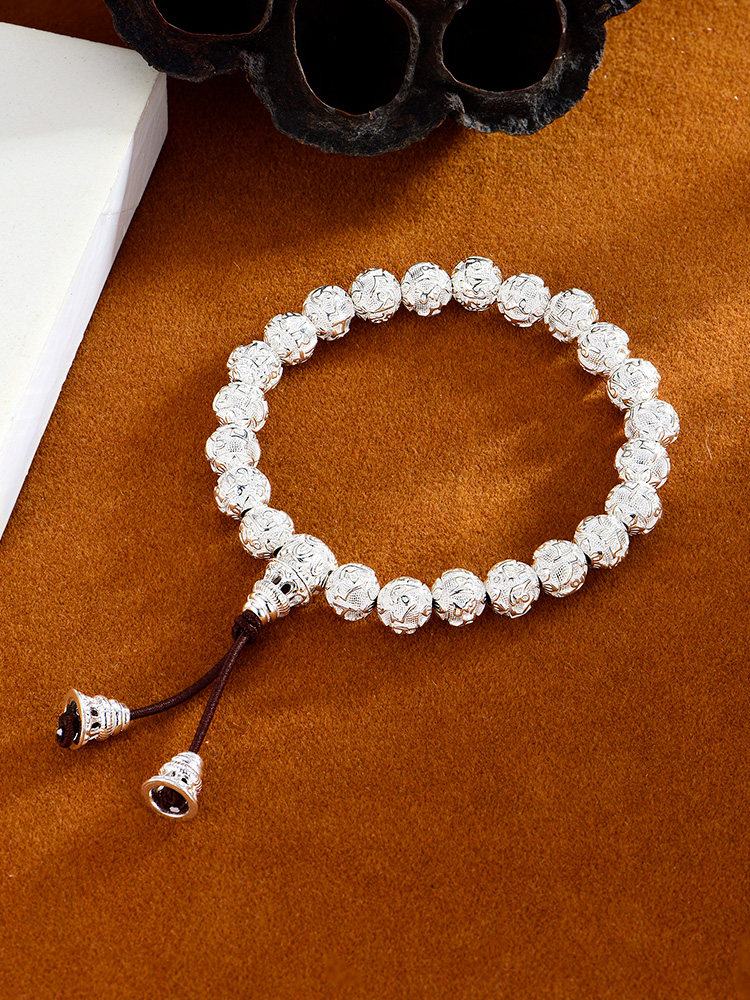 Leftgo Natural Blue Water Jade Round Bead Bracelet for Women, Amber Bracelet, Guatemala S925 New Model
