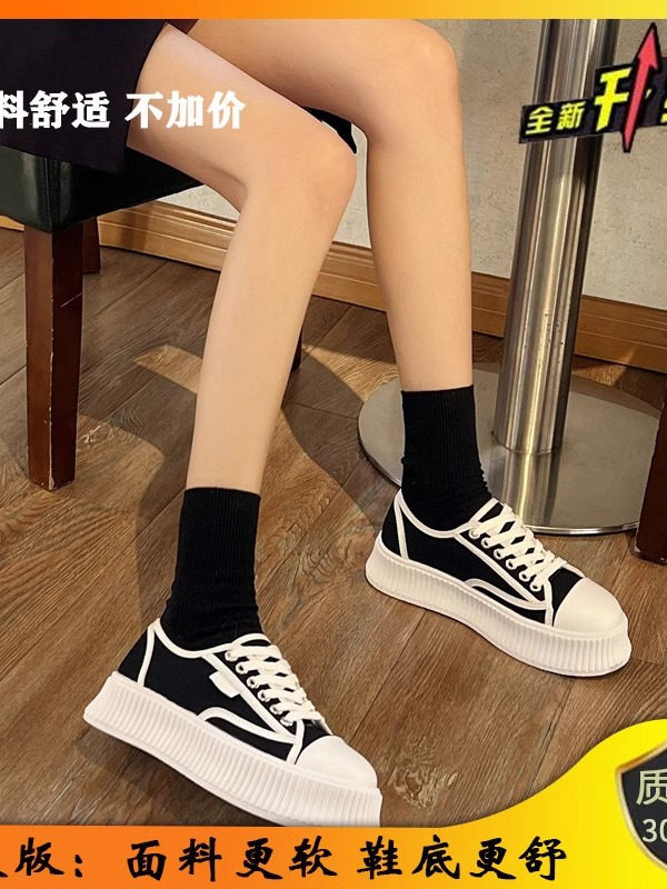Universal Black Canvas Shoes for Women, 2026 Spring New Versatile Casual Sports Niche Height-Increasing Thick-Soled Sneakers