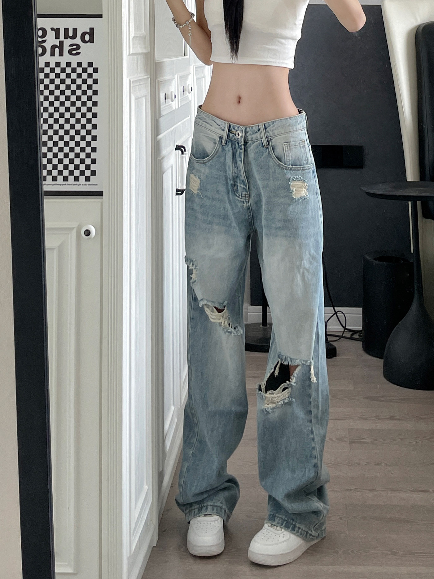 9002up American Retro Loose Straight Ripped Jeans Trendy Brand Summer Drapey Hip Hop Pants