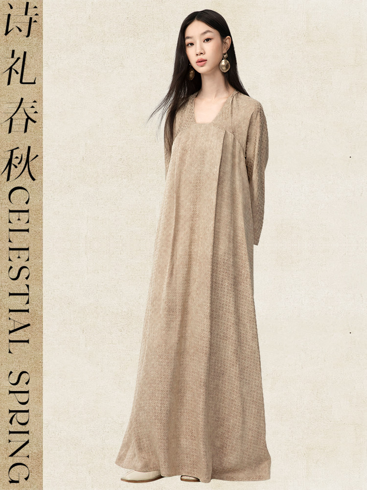 Original New Chinese-Style Women's Clothing from Shili Chunqiu, Tang Dynasty Fortune-Bringing Copper Coin Pattern Rayon Jacquard Confucian Skirt-Style National Style One-Piece Dress