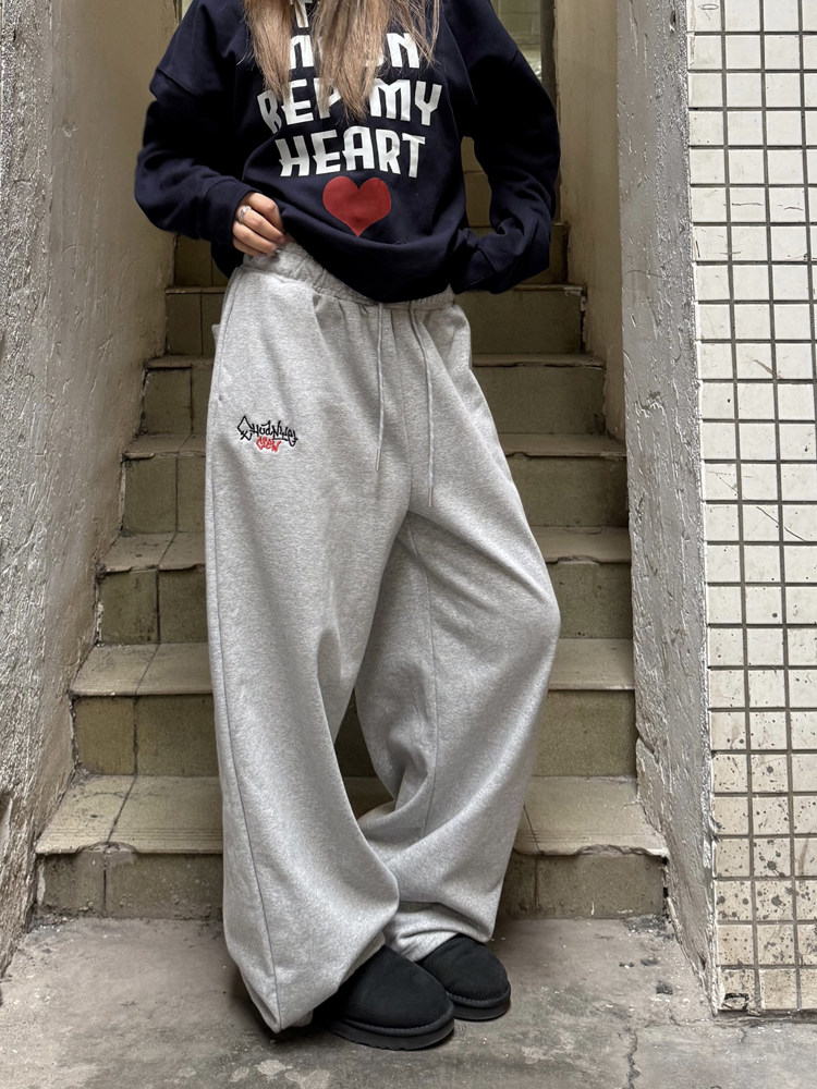Chuanchuan Yijia American-Style Heavyweight Terry Original Embroidered Loose Straight-Leg Sweatpants for Men and Women with Elastic Waist Casual Pants for Autumn and Winter