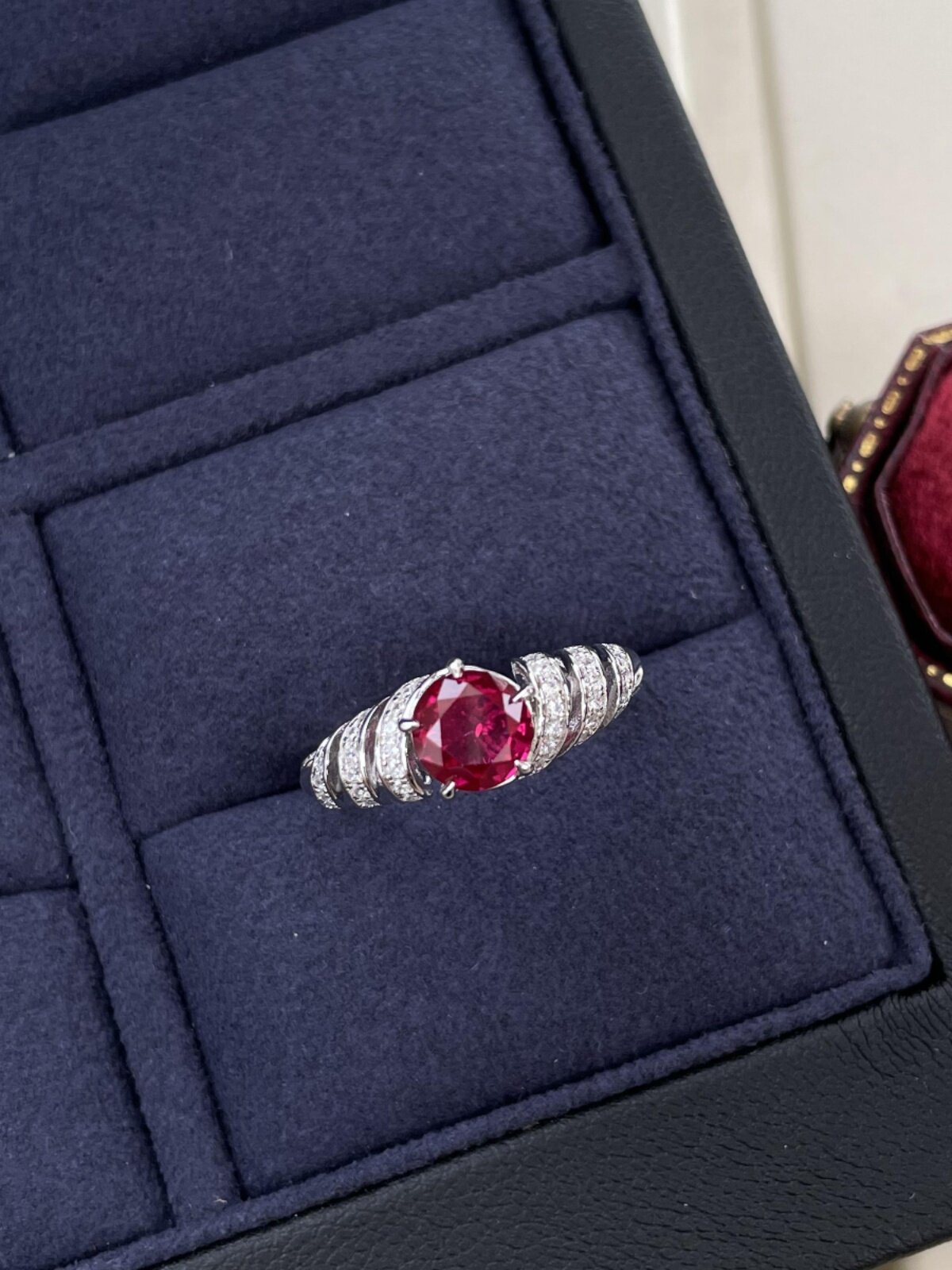 1.2Ct Pigeon Blood Red S925 Sterling Silver Ring 6*6 Artificial Red Corundum High-End Ruby Inlaid Designer Model