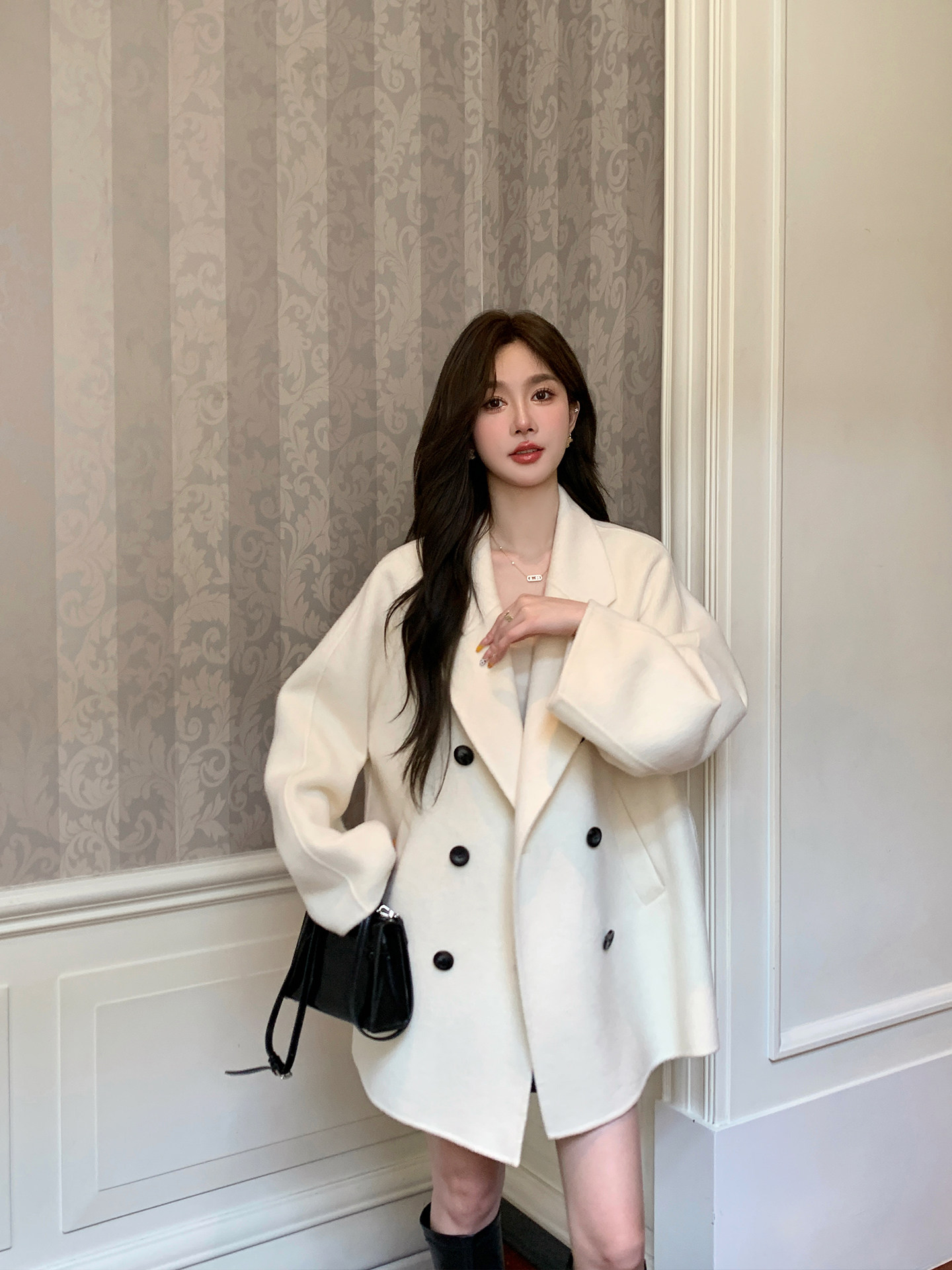 Notting Hill 2025 New Double-Sided Cashmere Wool Coat for Women, Autumn and Winter Mid-Length Loose 100% Wool Coat