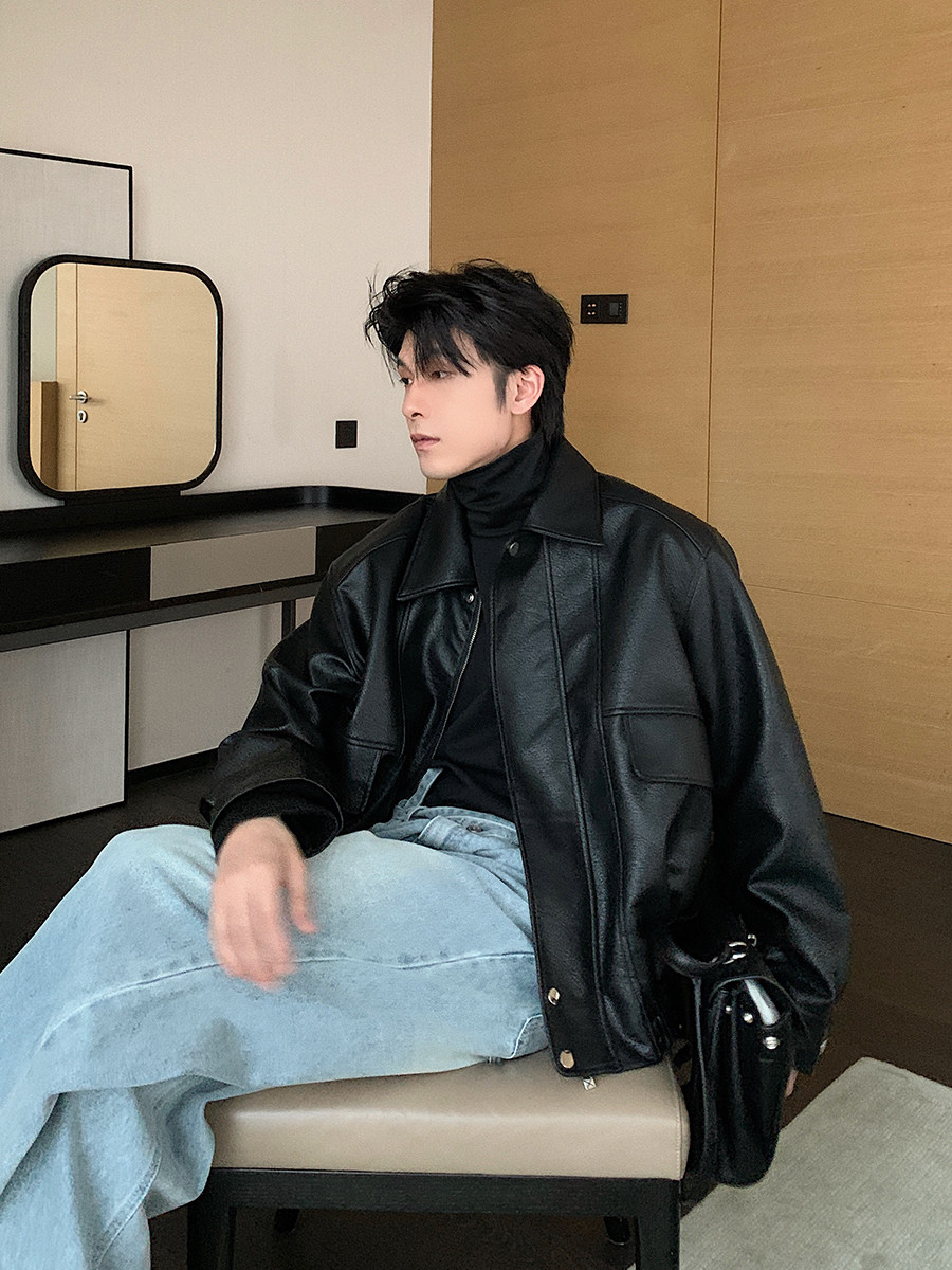 Hualun Autumn and Winter Leather Jacket Trendy Men's Cool Style High-End Men's Leather Jacket 2024 New Pu Leather Top